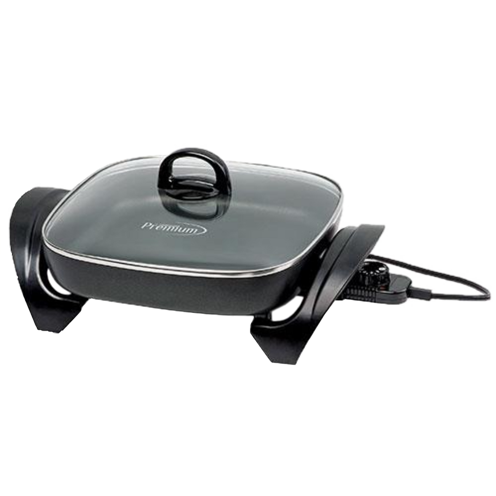 Premium - 1200 Watt 12" Electric Skillet With See-Through Glass Lid - Black