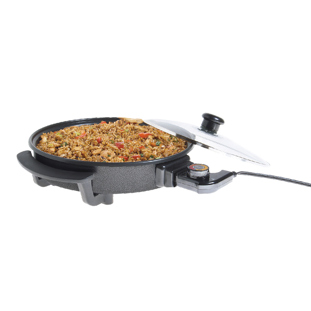 Premium - 1400W 11 Inch Rounded Electric Skillet Non-Stick Coating Glass lid