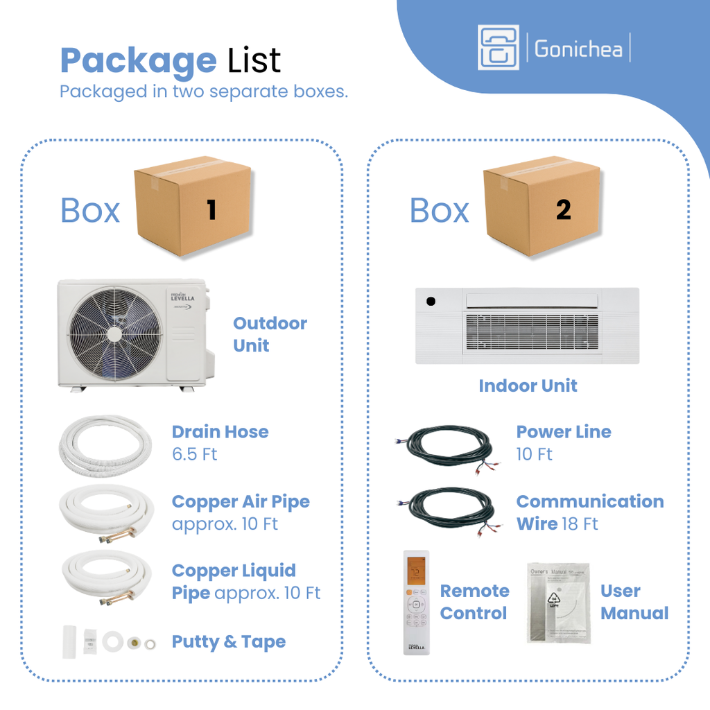Premium Levella® 12,000 BTU 21.4 SEER2 Ductless Mini-Split Inverter Air Conditioner Heat Pump System Full Set 230V. WIFI Included.