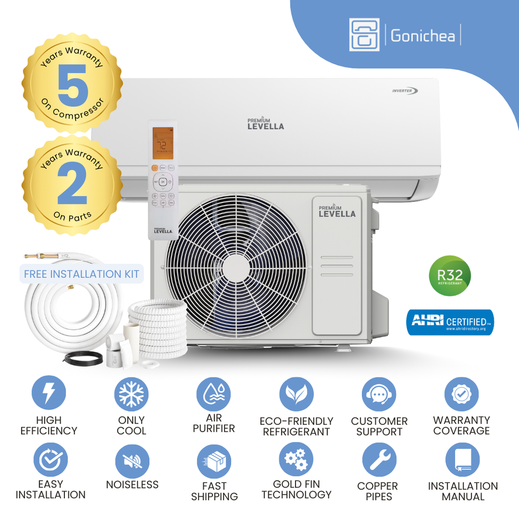 Premium Levella® 17,000 BTU 19 SEER2 Ductless Mini-Split Inverter Air Conditioner Only Cool System Full Set 230V.