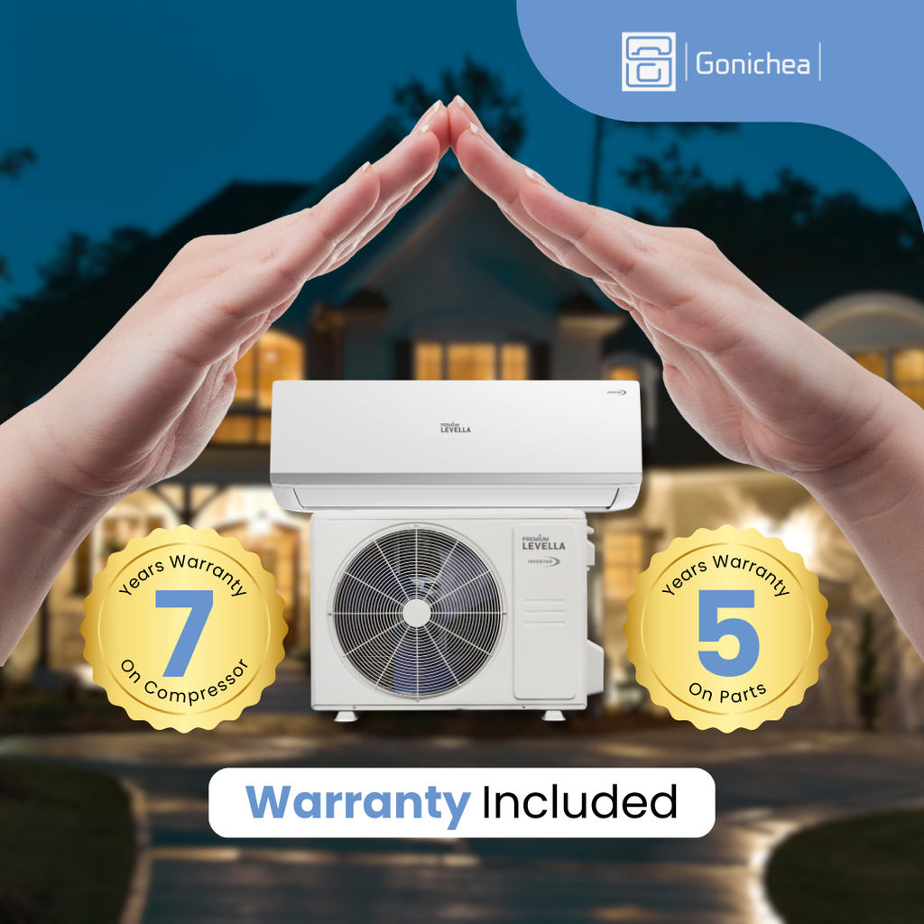 Standard Warranty: Premium Levella High Efficiency SEER2 Series Inverter ductless mini split heat pump system has 7 years warranty in compressor and 5 years warranty in parts.